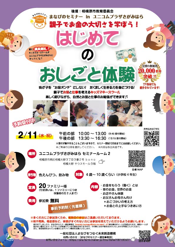 2月11日(水祝)【ユニコムプラザさがみはら】キッズマネースクール情報
