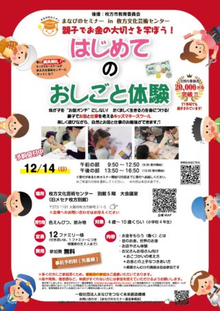 12月14日(日)【枚方市総合文化芸術センター(旧メセナひらかた会館) 別館】枚方市教育委員会後援:キッズマネースクール情報