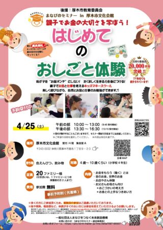 4月25日(土)【厚木市文化会館】厚木市教育委員会後援:キッズマネースクール情報