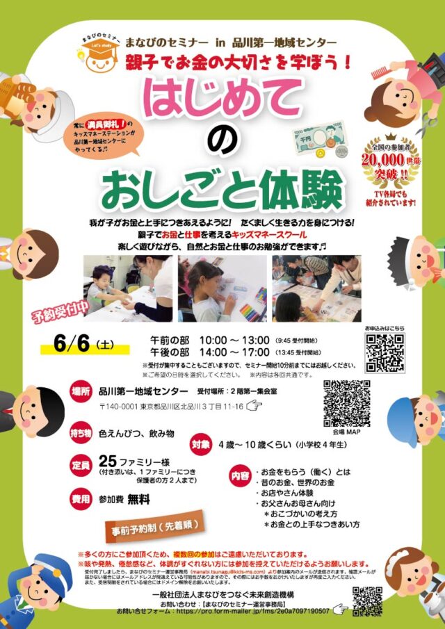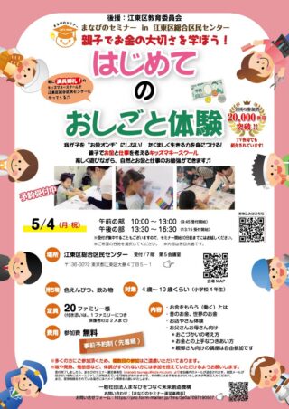 5月4日(月祝)【江東区総合区民センター】江東区教育委員会後援:キッズマネースクール情報
