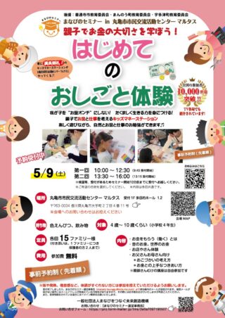 5月9日(土)【丸亀市市民交流活動センターマルタス】善通寺市、まんのう町、宇多津町の各教育委員会後援:キッズマネーステーション情報
