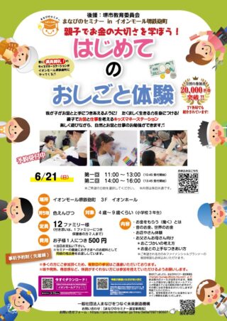6月21日(日)【イオンモール堺鉄砲町】堺市教育委員会後援:キッズマネーステーション情報