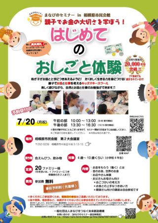 7月20日(月祝)【相模原市民会館】キッズマネースクール情報