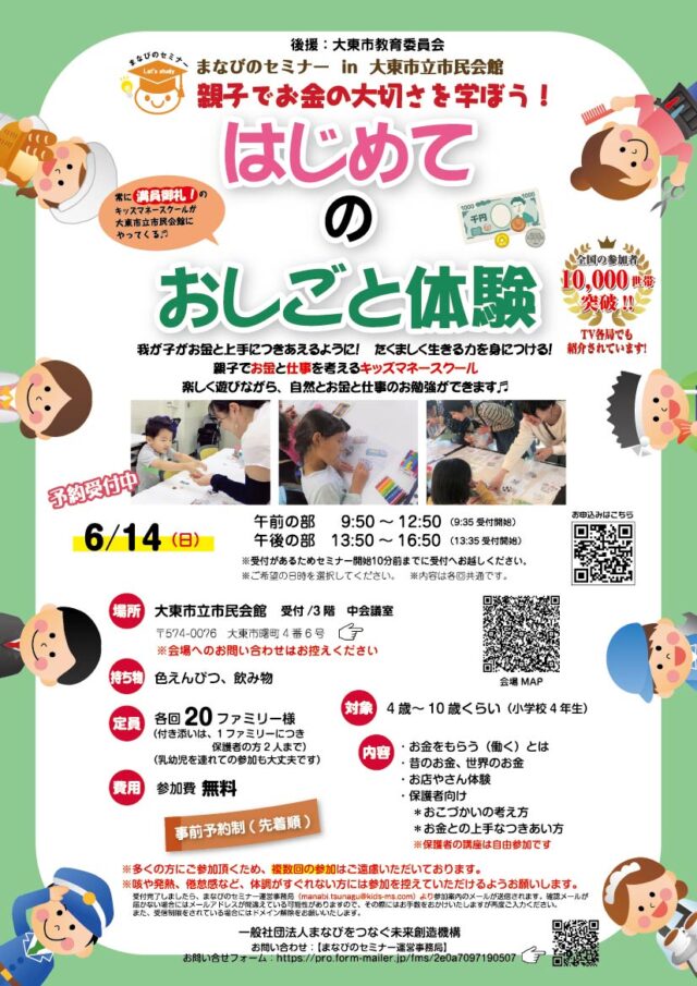 6月14日(日)【大東市立市民会館】大東市教育委員会後援:キッズマネースクール情報