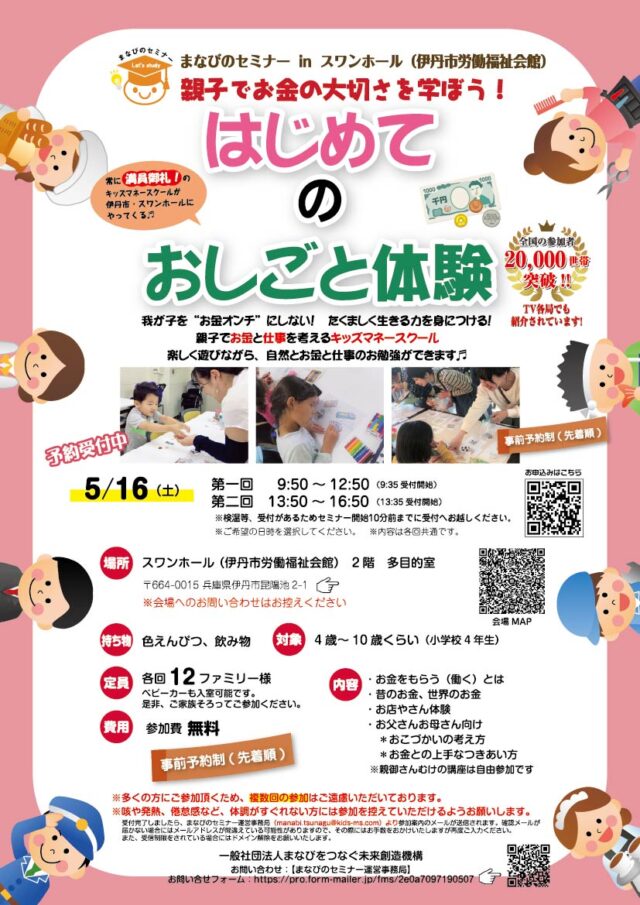 5月16日(土)【スワンホール(伊丹市立労働福祉会館)】キッズマネースクール情報