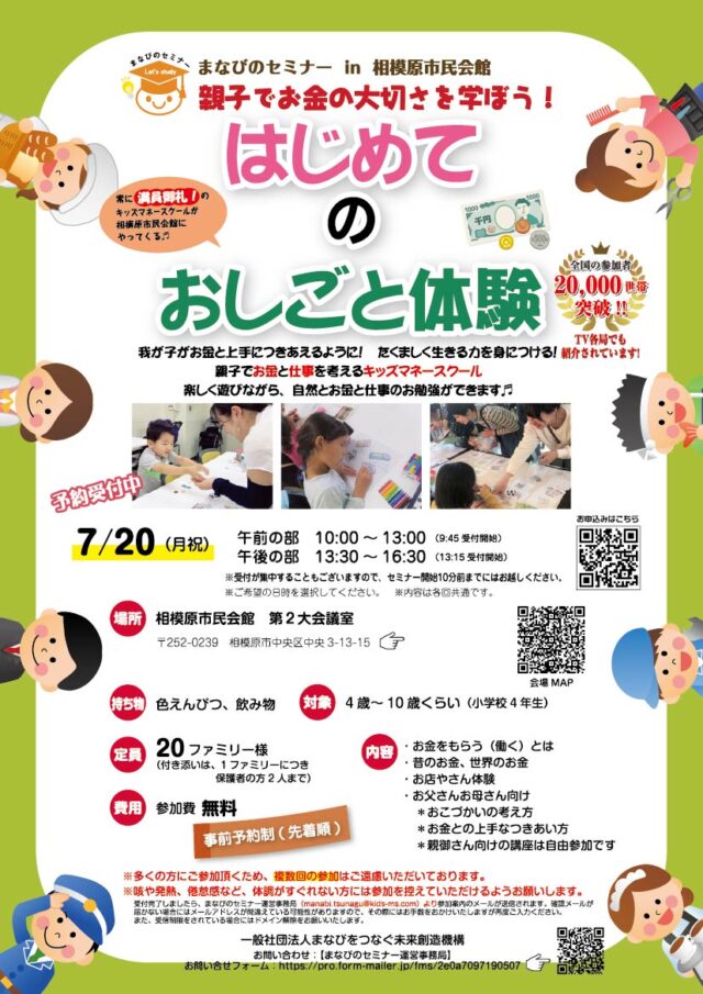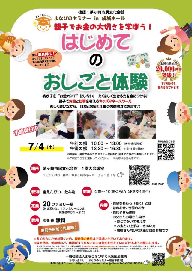 4月25日(土)【厚木市文化会館】厚木市教育委員会後援:キッズマネースクール情報
