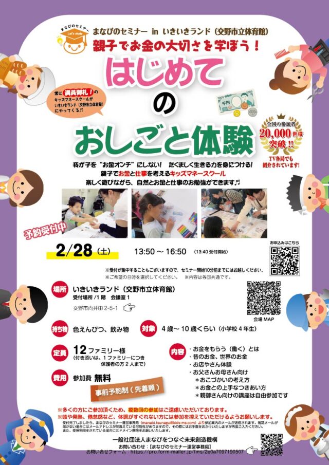 2月28日(土)【いきいきランド交野(交野市立体育館)】キッズマネースクール情報