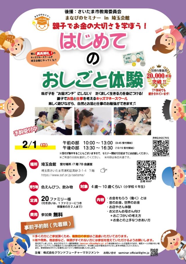 2月1日(日)【埼玉会館】さいたま市教育委員会後援:キッズマネースクール情報