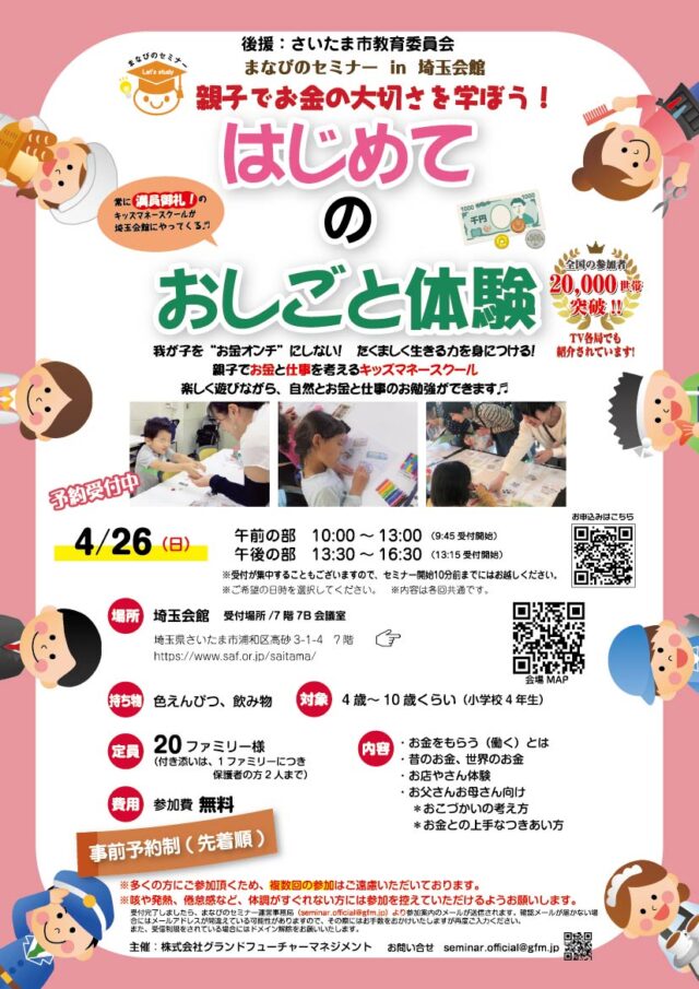 4月26日(日)【埼玉会館】さいたま市教育委員会後援:キッズマネースクール情報